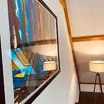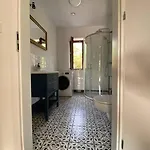 Koupelna má samostatnou toaletu, sprchu a umyvadlo, zatímco pokoj má psací stůl, přístroj na přípravu kávy a čaje.